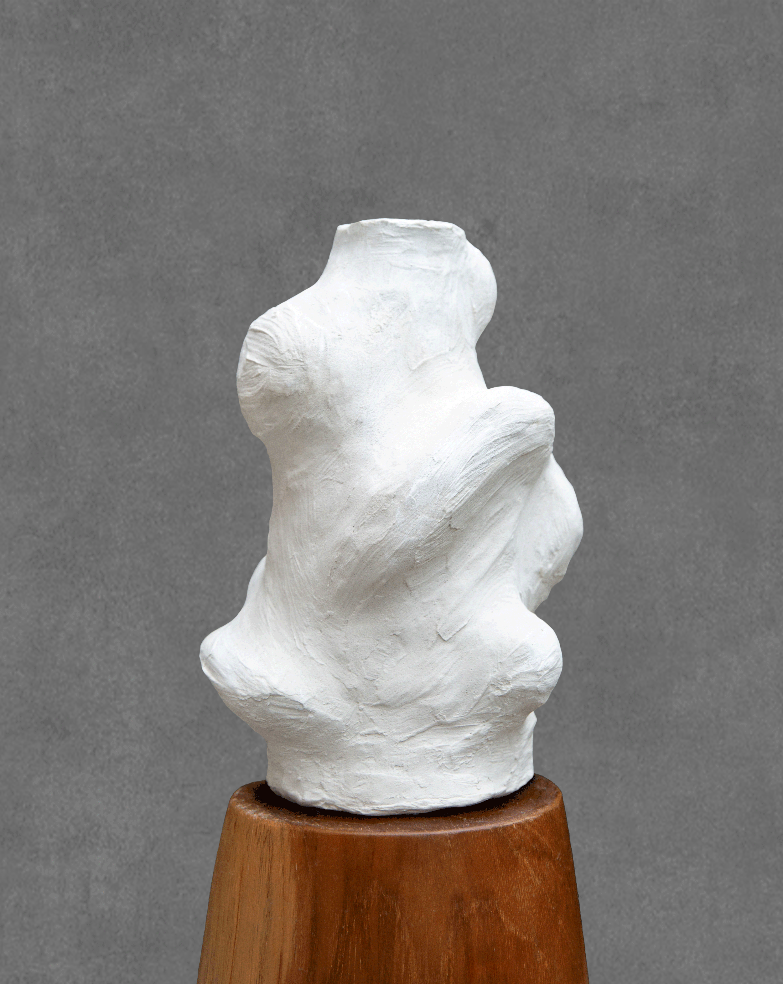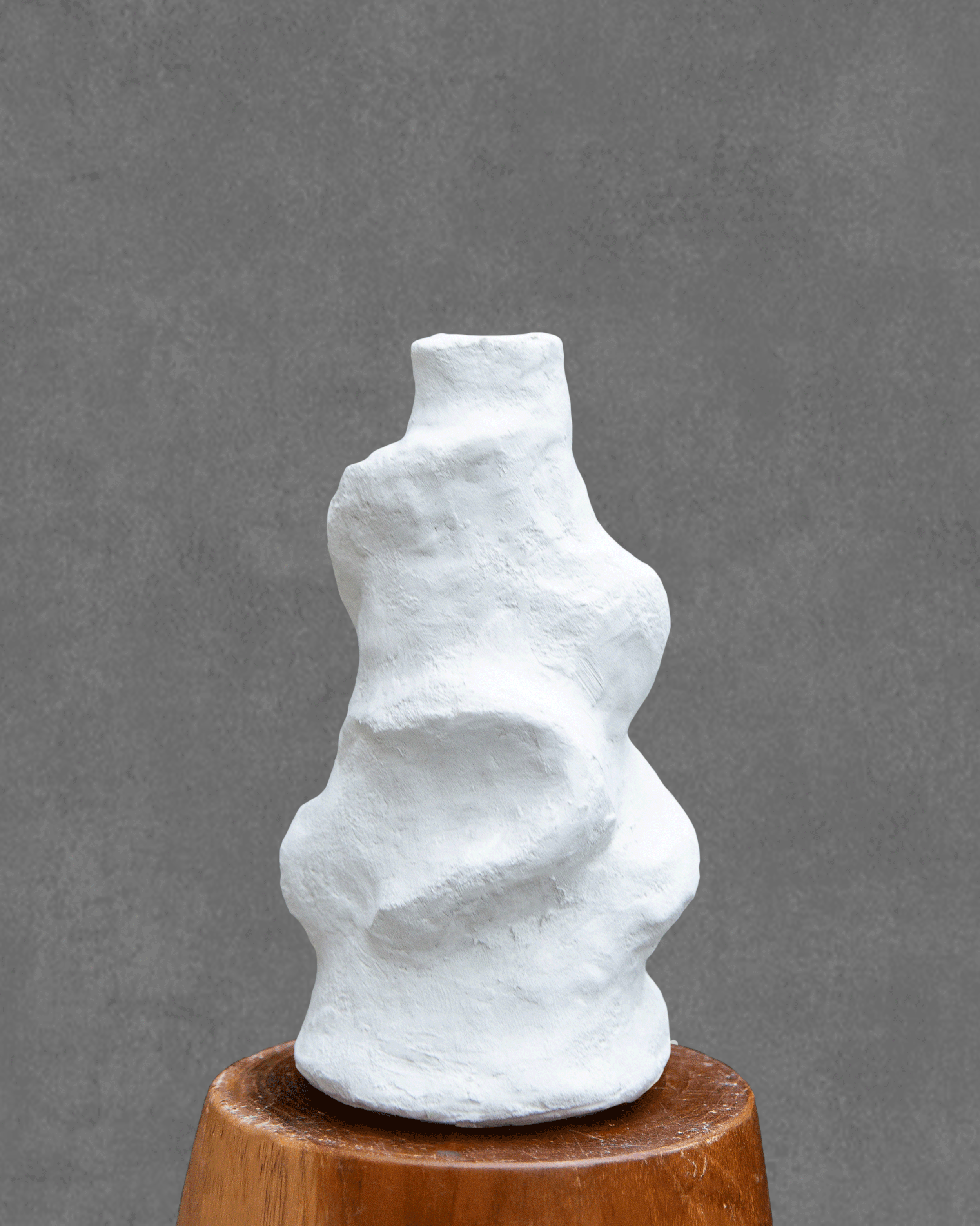HAND-BUILT SCULPTURESThese hand-built vases are created from recycled glass bottles, gesso, and drywall, taking on organic vertical forms that follow the structure of what once was. Their surfaces remain raw, uneven, and seemingly unfinished—holding a sense of becoming rather than completion. They carry the visual language of the city: constant building and rebuilding, layers formed over time, and a kind of beauty found within process, tension, and transformation.